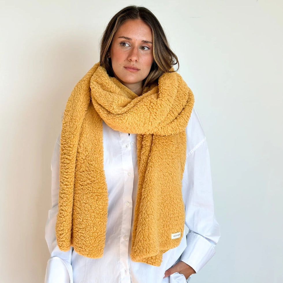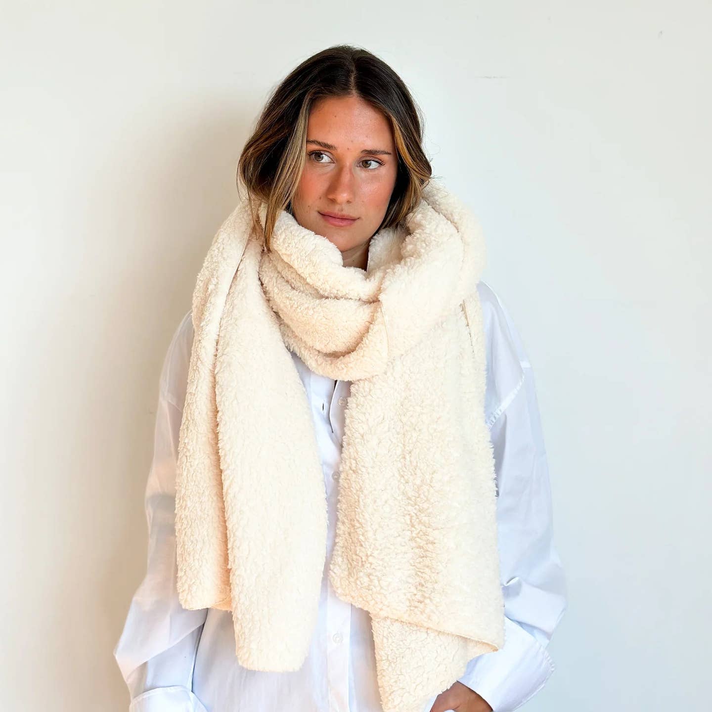 Deze grote teddy sjaal is zacht, warm en heerlijk volumineus — perfect om jezelf helemaal in te wikkelen tijdens de wintermaanden.